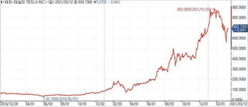 테슬라도 올해 고점 대비 30% 넘게 빠졌다가 최근 낙폭을 일부 회복한 상태다.