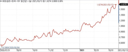 2월 초 연 1.0% 선이었던 미 국채 10년물 금리는 한 달여 만에 연 1.6% 언저리로 뛰어오른 상태다.