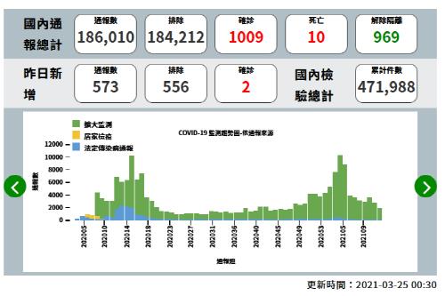 대만에서는 전날까지 코로나19 확진자 1천9명, 사망자 10명이 각각 나왔다.