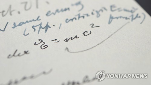 (서울=연합뉴스) 이재영 기자 = 알베르트 아인슈타인이 직접 손으로 쓴 'E=mc²' 공식이 담긴 서한이 경매에서 약 14억원에 팔렸다.