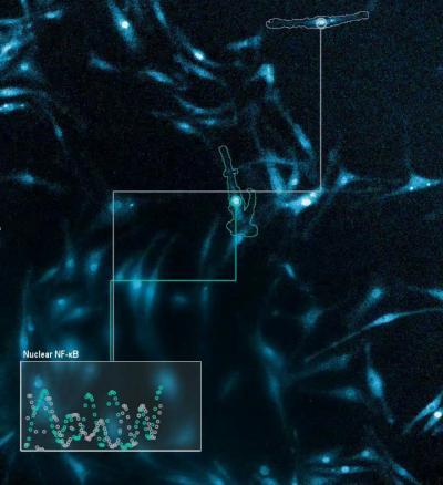 이럴 때 NFkB가 사용하는 특정 '부호 단어(word of code)'는, NFkB가 외부 자극을 발견하고 8시간 이상 진동 상태였는지 아니면 고정 상태였는지에 따라 달라졌다.