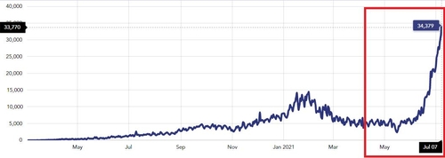 일일 확진자 수는 6월 24일 2만명, 7월 6일 3만명을 처음 넘어섰다.