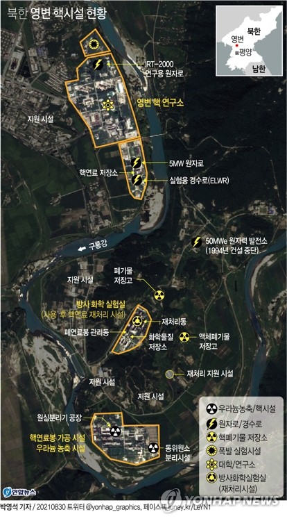 38노스는 30일(현지시간) "영변 핵연구센터를 촬영한 상업용 위성사진이 5MW(메가와트) 원자로의 재가동 가능성을 뒷받침하는 추가 증거"라며 지난 25일부터 영변 핵연구센터에서 구룡강과 연결된 새로운 수로를 통해 냉각수가 방출된 정황이 위성사진으로 파악됐다고 주장했다.