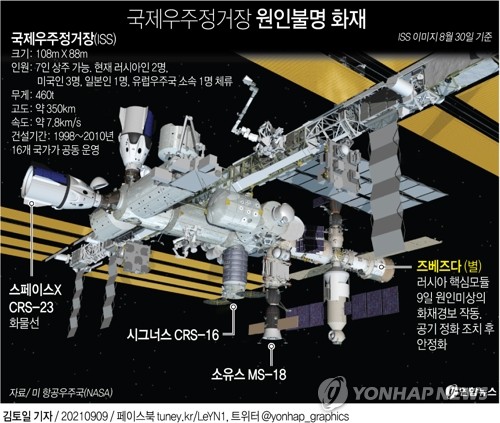 (모스크바=연합뉴스) 유철종 특파원 = 국제우주정거장(ISS)의 러시아 모듈 '즈베즈다'(별)에서 9일 원인 불명의 발화가 일어났다고 리아노보스티 통신 등이 보도했다.