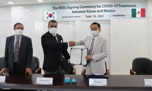 (서울=연합뉴스) 김잔디 기자 = 한국유나이티드제약은 멕시코 메디멕스(Medimex)와 현재 개발 중인 신종 코로나바이러스 감염증(코로나19) 흡입 치료제 'UI030'(제품명 코르빈 액티베어)의 현지 판매에 협력하는 양해각서를 체결했다고 16일 밝혔다.
