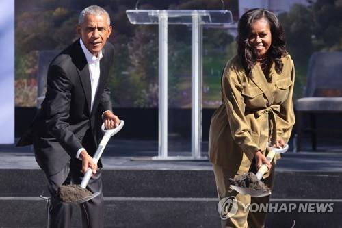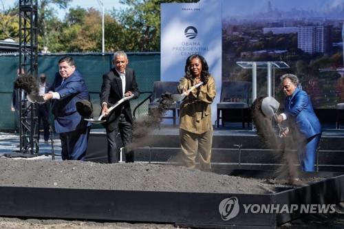 오바마 부부는 28일(현지시간) 잭슨파크의 센터 건립 부지에서 J.B. 프리츠커 일리노이 주지사(56·민주), 로리 라이트풋 시카고 시장(59·민주) 등과 함께 '첫 삽'을 뜨고 본격적인 공사 시작을 알렸다.