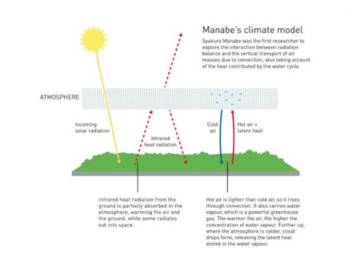 마나베는 대기 중 이산화탄소 농도가 증가하면 어떻게 지구 표면 온도가 올라가는지 입중하는 모델을 1960년대에 개발해냈다.