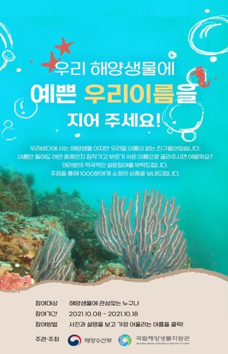 해수부는 선정된 국문 이름을 '2022년 국가 해양수산생물종 목록집'에 반영하고, 참여자 중 1천명을 선정해 소정의 상품도 제공할 계획이다.