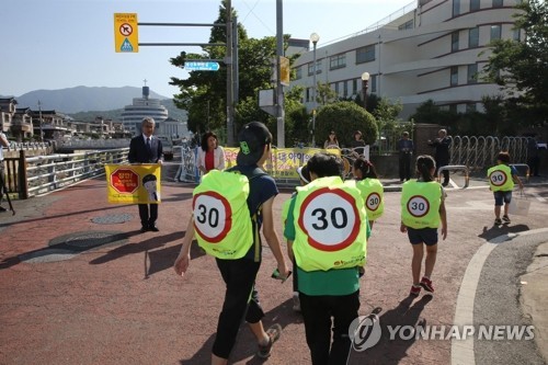 ▲ CJ대한통운[000120]은 어린이 교통사고 예방을 위한 '빛 반사 안전가방덮개' 1천개를 경기 광주경찰서에 전달했다고 7일 밝혔다. 이 가방 덮개는 키가 작아 운전자 시야에 들어오기 어려운 초등학교 저학년생을 위해 제작된 안전용품으로, 형광색 덮개 형태이며 중앙에 빨간 원과 어린이보호구역 제한 속도 30㎞를 뜻하는 숫자 30이 표기됐다. 빨간 원은 빛 반사 소재로 제작돼 야간이나 우천 시에도 눈에 잘 띈다. 이 가방 덮개는 올해 개교한 경기도 광주시 신현초등학교, 광주송정초등학교 저학년에 전달될 예정이다. (서울=연합뉴스)