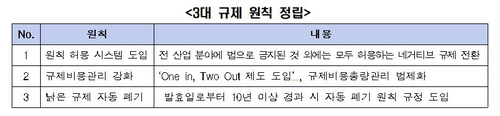이에 따라 한경연은 기업이 커진다는 이유로 규제가 늘어나는 현 시스템을 개선하고 원칙 허용 시스템 도입 등 3대 규제 원칙 정립을 최우선 국정과제로 내세워야 한다고 제언했다.