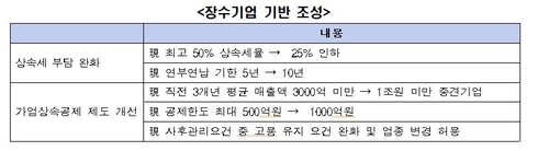 아울러 가업상속공제의 경우 세제 적용대상을 매출 1조원 중견기업까지 확대하고 공제 한도도 2배로 상향하자고 제안했다.