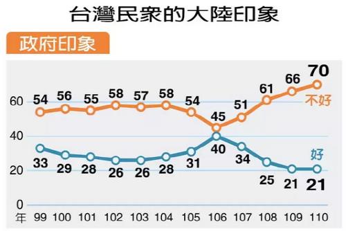 한편 연합보는 올해 양안 관계 조사에서 대만인 70%가 중국 정부에 부정적인 입장을 보이는 등 비호감도가 역대 최고 수준인 70%인 것으로 조사됐다.