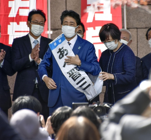 아베는 이날 시모노세키역 인근 광장에서 개최한 출정식에서 당장의 과제로 코로나19 극복을 내세우면서 지지를 호소했다.