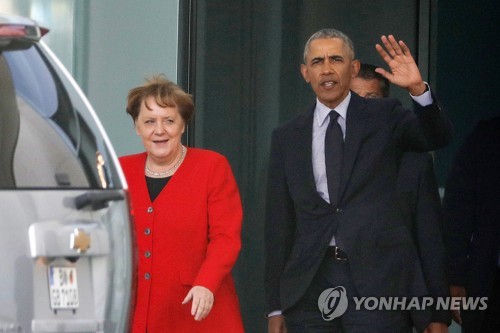 (워싱턴=연합뉴스) 김경희 특파원 = 버락 오바마 전 미국 대통령이 은퇴를 앞둔 오랜 파트너 앙겔라 메르켈 독일 총리를 향해 감사 인사를 건넸다.