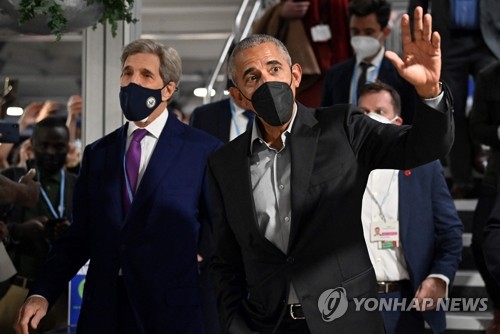 (런던=연합뉴스) 최윤정 특파원 = 버락 오바마 전 미국 대통령이 제26차 유엔기후변화협약 당사국총회(COP26)에서 '스타'처럼 등장했다.