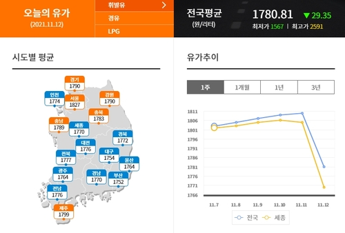 한국석유공사 유가 정보서비스 오피넷에 따르면 전날 전국평균 주유소 휘발유 판매가격이 리터당 1천810원으로 지난달 13일과 비교해 116원이나 올랐기 때문이다.