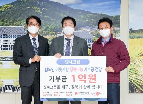 ▲ SM그룹은 우오현 회장이 경상북도에 '범도민 이웃사랑 행복나눔' 기부금 1억원을 전달했다고 18일 밝혔다. 범도민 이웃사랑 행복나눔은 경상북도가 추진 중인 자율 기부 캠페인이다. 우 회장은 "'위드 코로나' 시대 지역사회의 경제를 활성화하고, 소외계층 이웃을 돕자는 마음으로 기부에 동참했다"며 "주요 계열사인 우방, 티케이케미칼, 남선알미늄, 벡셀 등이 대구와 경북지역 기업인만큼 지역사회 발전에 작은 힘이나마 보태겠다"고 말했다. (서울=연합뉴스)