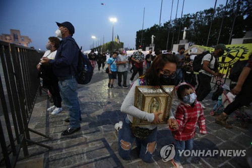 (멕시코시티=연합뉴스) 고미혜 특파원 = 한 손으로는 성모의 초상을 가슴에 안고 다른 손으론 어린아이의 손을 잡은 여성이 무릎으로 한걸음 한걸음 힘겹게 걷습니다.