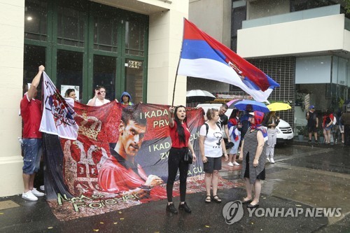 이들은 세르비아 국기를 흔들며 '노바크에게 자유를'·'그를 풀어주라' 등의 구호를 외쳤다.
