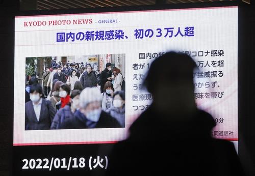 일본에선 전파력이 강한 오미크론 변이 확산 등의 영향으로 코로나19 신규 확진자가 급속히 늘어나고 있다.