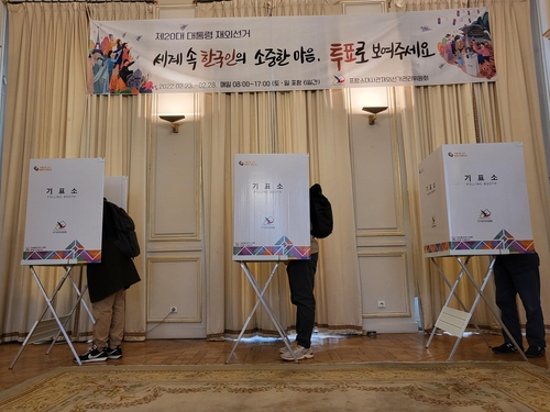 (파리=연합뉴스) 현혜란 특파원 = 제20대 대통령선거 재외투표 첫날인 23일(현지시간) 프랑스 투표소에도 한인들의 발길이 끊이지 않았다.