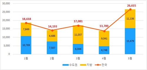 이 가운데 수도권과 지방이 각각 4천748가구, 9천41가구로 이달보다 21.4%, 18.1% 줄어들 예정이다. 수도권의 경우 올해 1월(1만769가구) 이후 3개월 연속으로 감소세가 이어지고 있다.