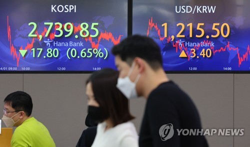 이날 코스피는 전 거래일보다 17.80포인트(0.65%) 내린 2,739.85에 거래를 마쳤다.