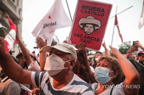 페루 국회는 지난 8일엔 카스티요 대통령에 대한 사퇴 요구안을 찬성 61표, 반대 43표, 기권 1표로 통과시키기도 했다.