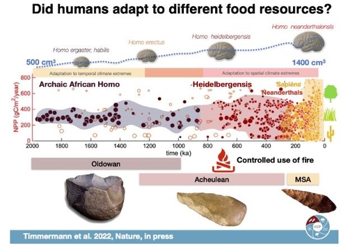 이번 연구의 제1저자이자 교신저자인 팀머만 단장은 "200만년전∼100만년전 인류는 매우 안정적인 서식지를 선호했지만 호모 하이델베르겐시스가 출현하고 이들이 유라시아도 광범위하게 이동하며 매우 건조하고 추운 새로운 환경에 적응했다"고 말했다.