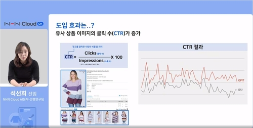 석 선임은 패션고가 기존에 사용하던 이미지 검색 솔루션과 NHN클라우드 AI 패션 솔루션이 도출해 내는 각각의 검색 결과에서 이용자들이 상품을 클릭하는 비율(CTR)을 비교해 봤더니 AI 패션의 CTR이 더 높게 나타났다고 밝혔다.
