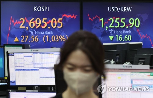 (서울=연합뉴스) 김유아 기자 = 29일 원/달러 환율이 6거래일 만에 하락세로 돌아서 1,255원대에서 마감했다.