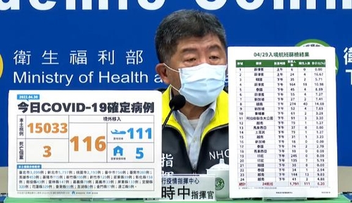 천스중(陳時中) 위생부장(장관)은 전날 대만 내 확진자가 29일(1만1천974명)에 비해 25.5% 정도 늘었지만 아직 최고점을 기록하지 않아 앞으로 지속적으로 늘어날 수 있다고 밝혔다.