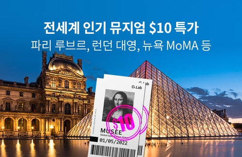 ▲ 하나카드는 거리두기 해제에 따른 여행 수요 증가에 맞춰 국내외 유명 박물관을 10달러에 이용할 수 있는 '텐달러 써프라이즈 시즌2' 이벤트를 연다. 파리 루브르박물관, 런던 대영박물관, 뉴욕 현대미술관, 아르떼뮤지엄 등 국내외 유명 전시·박물관이 대상이다. 7월 말까지 하나카드 해외서비스 전용 플랫폼인 지랩(G.Lab)에서 매달 장소별 입장권 2천22매를 10달러에 2매까지 선착순으로 구매할 수 있다. (서울=연합뉴스)