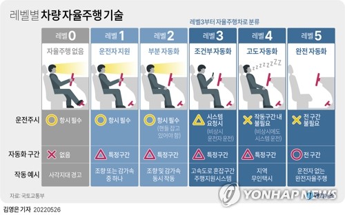 (세종=연합뉴스) 김동규 기자 = 정부가 자율주행차의 조기 상용화를 지원하기 위해 '레벨3' 자율차의 안전기준을 국제기준에 맞춰 개정한다.