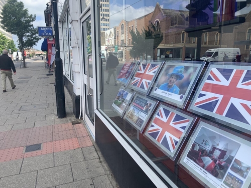 슈퍼마켓에는 기념 과자를 팔고 기념품 가게에는 여왕 관련 물건들을 가득 진열해놨습니다. 서점에도 진작부터 여왕과 왕실에 관한 도서를 모아 전시해두고 있습니다.