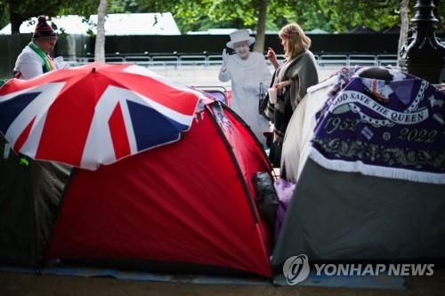 버킹엄궁 앞에는 며칠 전부터 좋은 자리에서 행사를 보려는 왕실 팬들이 텐트를 설치했습니다.