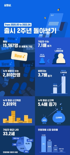 (서울=연합뉴스) 임성호 기자 = 택스테크 스타트업 자비스앤빌런즈는 세금신고·환급 도움 서비스 '삼쩜삼' 출시 2년만에 누적 환급 신고액이 5천억원에 육박했다고 13일 밝혔다.
