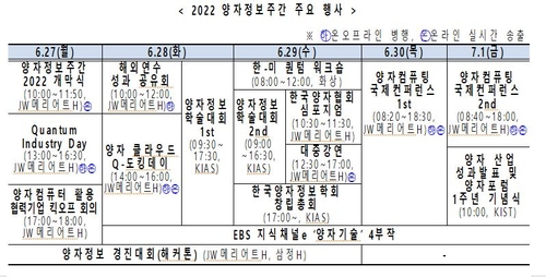 아울러 양자기술 분야로의 우수 학생 유입을 위한 양자컴퓨팅 활용 경진대회(27∼29일)와 해외연수 성과 공유회(28일)가 열린다.