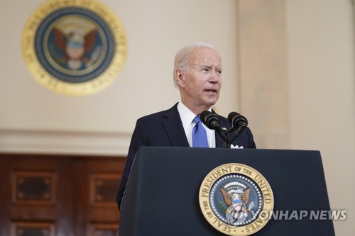 (워싱턴=연합뉴스) 김경희 특파원 = 조 바이든 미국 대통령은 24일(현지시간) 대법원이 낙태를 합법화한 이른바 '로 대(對) 웨이드' 판결을 폐기한 것과 관련, "국가와 법원에 슬픈 날"이라고 비판했다.