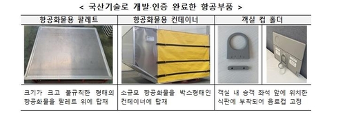 (세종=연합뉴스) 김동규 기자 = 국내 업체가 개발한 항공 부품 3종이 국토교통부의 안전성 인증을 통과해 항공사에 본격 보급된다.