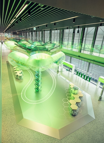 바래의 '에어 오브 블룸'(Air of Blooms)은 모듈형 로봇 유닛 '에어리 Air(e)'들의 조합으로, 사람이 다가오면 로봇 유닛들이 움직여 공간을 만들고 조합하는 휴식 공간이다.