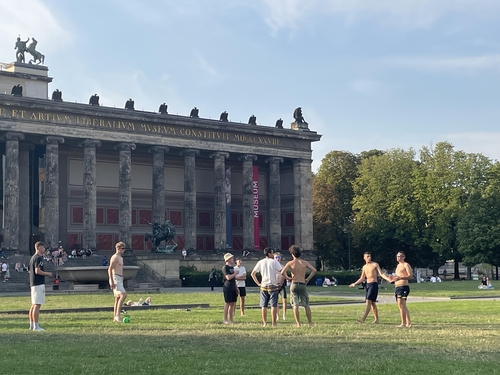 또 다른 명소인 베를리너 돔 앞 잔디밭에서는 웃통을 벗은 청년들이 '이열치열'로 축구를 했다.