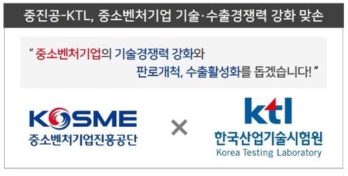 (서울=연합뉴스) 신선미 기자 = 중소벤처기업진흥공단(중진공)은 한국산업기술시험원(KTL)과 1일 경남 진주시 KTL에서 중소벤처기업의 기술경쟁력 강화와 판로개척, 수출 활성화를 위한 업무협약을 맺었다고 밝혔다.