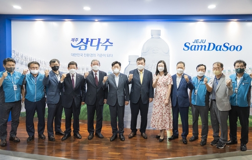 ▲ 제주도개발공사는 싱하이밍 주한 중국대사가 4일 제주삼다수 스마트팩토리를 방문했다고 5일 밝혔다. 이번 방문은 한·중수교 30주년 행사의 일환으로 제주삼다수의 생산 현장과 지하수 보전관리 실태를 둘러보고 싶다는 중국 대사관 측의 요청에 따라 이뤄졌다. 싱 대사는 제주삼다수가 무라벨 생수 등 친환경 제품 개발에 앞장서는 데 깊은 인상을 받았다고 말했다. (서울=연합뉴스)