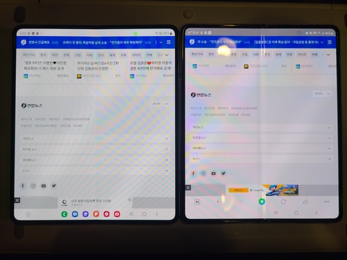 실제로 폴드4를 전작과 나란히 두고 비교하면 새 구조가 적용된 힌지는 절반 수준으로 얇아졌다. 힌지 부위의 화면이 접히는 부분에는 여전히 주름이 있긴 하지만, 전작보다는 다소 줄어 매끄러워진 느낌이었다.