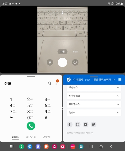 앱을 터치하면 바로 전체 화면으로 표시되며 쉽게 넘어갈 수 있고, 태스크바의 앱을 꾹 누른 뒤 화면으로 드래그하면 최대 3개로 화면을 분할해 사용할 수 있어 멀티태스킹이 쉬워졌다. 유튜브를 보면서 인터넷 서핑을 하는 동시에 사진을 찍는 것도 얼마든지 가능하다.