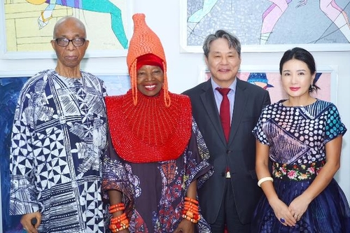 ▲ 주나이지리아 한국대사관(대사 김영채)은 2030 부산세계박람회 유치를 위해 나이지리아 국내외에서 저명한 예술가인 니케 오쿤다예(70)를 홍보대사로 위촉했다고 17일(현지시간) 밝혔다. 니케는 서아프리카 최대 규모로 8천점 이상의 예술작품을 보유한 니케 아트 갤러리를 운영하고 있으며, 2000년 독일 하노버 세계박람회에서 나이지리아의 파빌리온을 직접 설계했다. (요하네스버그=연합뉴스)
