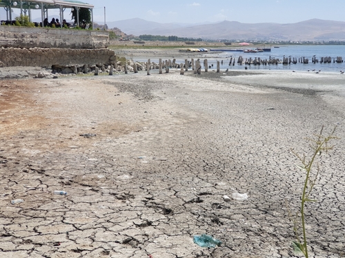 옆의 고깃배를 개조한 식당은 원래 물에 뜬 채로 영업을 했는데, 지금은 뭍으로 끌어 올려져 가건물 신세가 됐다. 이 식당 종업원 세르벳 세이한은 "물이 낮아지고 배가 손상되면서 더는 둑 옆에서 장사할 수 없게 됐다"고 설명했다.