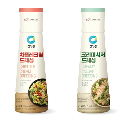 ▲ 대상㈜ 청정원은 치폴레크림 드레싱과 크리미시저 드레싱 등 샐러드 드레싱 신제품 2종을 출시했다.