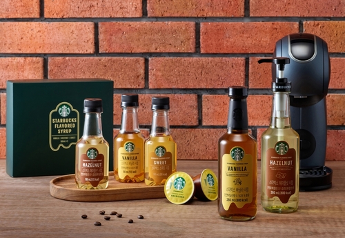 ▲ CJ제일제당[097950]은 스타벅스 코리아와 협업해 바닐라·헤이즐넛·스위트 등 3종의 시럽을 출시했다. 평균 당 함량이 시중 제품 보다 약 30% 낮은 것이 특징으로, 전국 스타벅스 매장에서 판매된다.